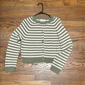 Green and White Striped Women's Sweater