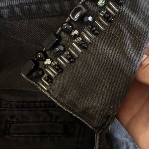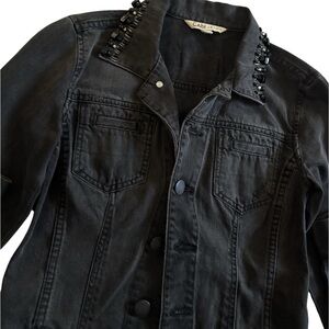 CAbi Jeans Jacket Womens XS Gray Denim Beaded Embellished Zip Cuff