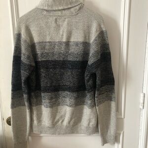 Men’s Gray and Black Striped Shawl Collar Cotton Sweater XL
