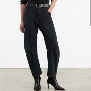 Nili Lotan Shon Horseshoe Pants Barrel Leg Twill Black EUC $390 Womens Sz 00