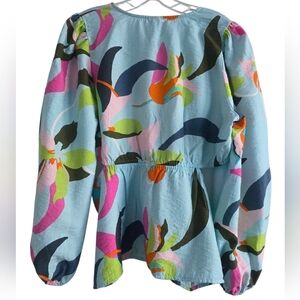 A New Day Tropical Print Peplum Blouse With Cut Outs Size Large