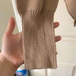 Stay warm and stylish with this cozy tan sweater. Perfect for any casual outing. Very oversized.