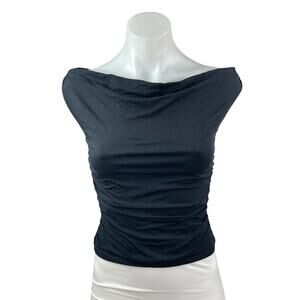 Abercrombie & Fitch Women's Black Cowl Neck Short Sleeve Ruched Crop Top Size XS