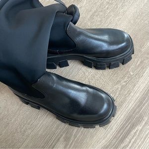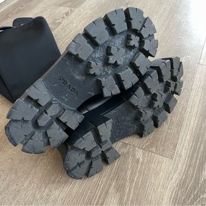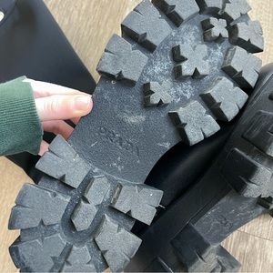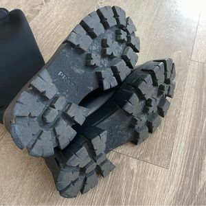Gently worn. Some subtle “barely there” scuffs on the inner toe in the shoe as pictured from wear. Features removable PRADA zip pouch on each leg 🖤 purchased off of Poshmark. Unsure if they are 100% authentic. To me they seem to be but cannot guarantee. No returns.