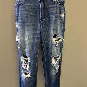 KanCan Medium Blue Very Distressed Faded Straight Leg 5-Pocket Jeans- Size 9/28