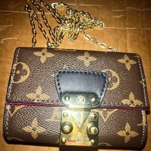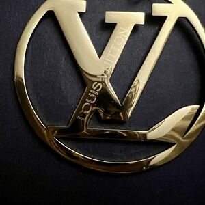 Elegant gold earrings featuring a designer logo. Perfect for adding a touch of luxury to any outfit.