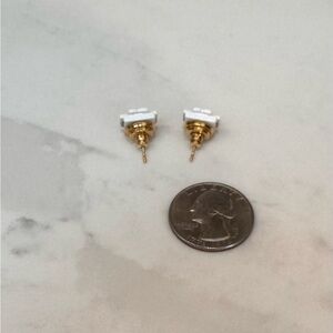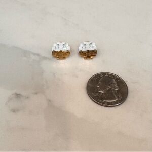 Tory Burch White Enamel Gold Logo Stud Earrings Classic Small