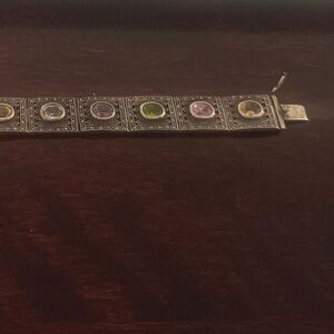 Vintage 925 Silver Multi-gemstone Link Bracelet