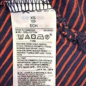 This blue and navy striped top has adorable ruffle on the sleeves. Size is XS, but it seems to run a bit larger for the size. In good pre-loved condition and perfect for any occasion. Smoke free and pet free home.