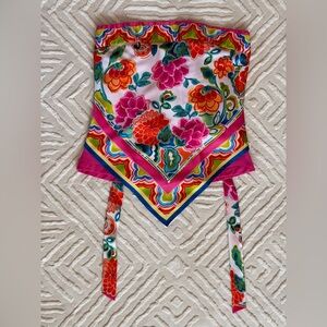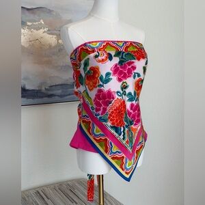 Caché Y2K Silk Scarf/Handkerchief Print Strapless Top Floral Bandana Hem