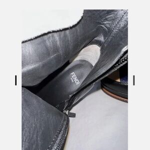 Chic Fendi boots with striking black and blue design. Unique heel adds flair. Perfect for bold fashion statements. Never worn.