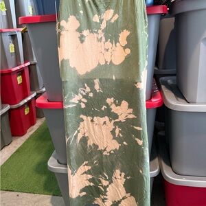 Stylish tie-dye dress. Features green and cream colors. Perfect for casual wear.