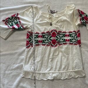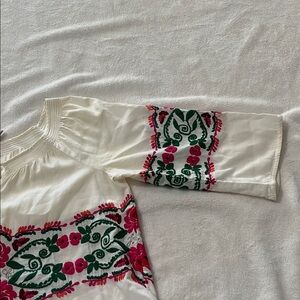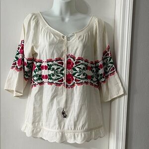 Juicy Couture white Blouse with Pink and Green Embroidery