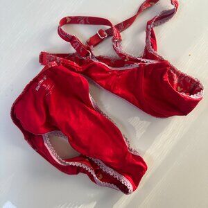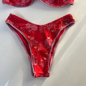 Blackbough Red Heart Rose Pattern Balconette & High Rise Bikini Set Small