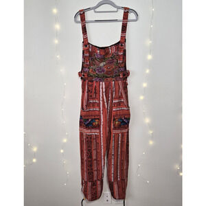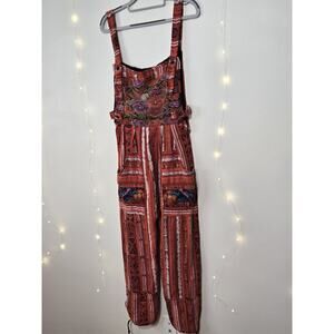 VINTAGE Women's Guatemalan Huipil Tapestry Floral Overalls Jumpsuit M Hippie