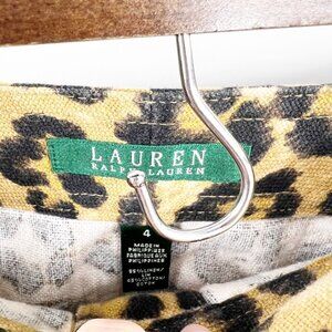 ✅ LAUREN RALPH LAUREN LEOPARD MIDI BUTTON FRONT LINEN BLEND SKIRT SIZE 4