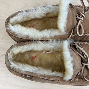 L.L. Bean Men’s Size 11.0 M Wicked Good Slipper Moccasins Brown Suede Lined. In good condition, has some marks/blemishes and a few fuzzes on lining. Pictures show details!
