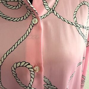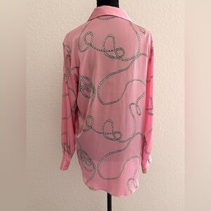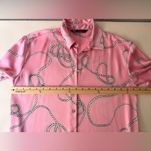 ZARA Satin Pink Rope & Chain Print Button Down Shirt | Nautical Chic