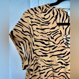 Nine West Tan and Black Animal Print Women’s Blouse Size L