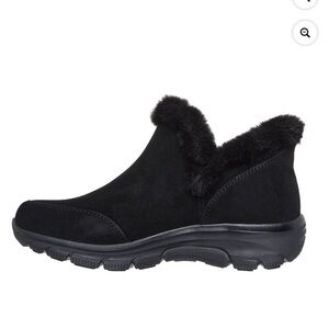Cozy faux fur collar for warmth. Slip-on design for easy wear. Lightweight cushioned sole supports all day comfort. Durable traction outsole for steady steps. nwt no box