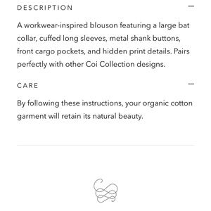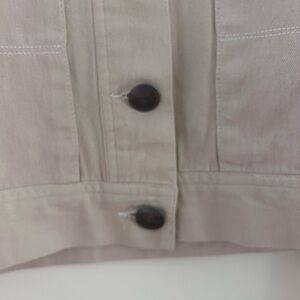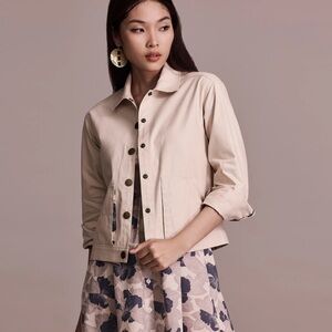 Beautifully constructed 100% organic cotton jacket cargo pockets. Cropped boxy silhouette. Metal shank buttons. Appears to have never been worn or washed. In like new condition. This jacket runs a bit small. Double check measurements before purchase.
