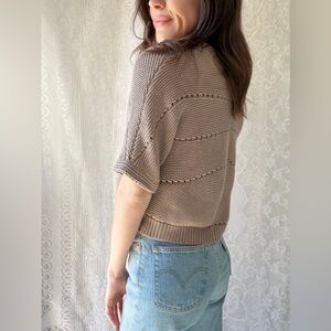 Croft & Barrow Beige Short Sleeve Knit Cardigan Minimalist Button Sweater