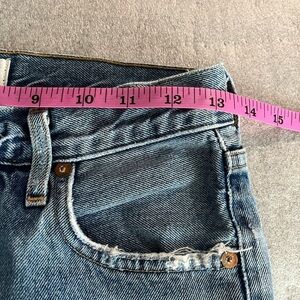 [W24Ins27”]Agolde Feel Good Blue Straight-Leg Button Fly Jeans Distressed Flaw