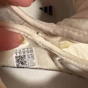 Stylish Adidas sneakers in cream and white. Perfect for casual wear. Comfortable and trendy design.