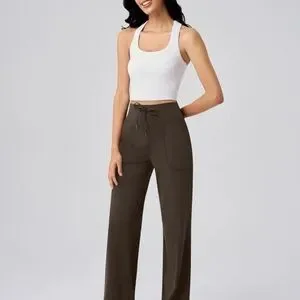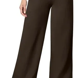 QQQWomen's YOGA PANTS DARK Brown Wide-Leg WITH POCKETS