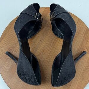 Christian Dior Diorissimo Pattern Black Leather Pumps