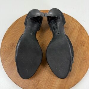 Step out in style with these elegant black peep-toe heels. Perfect for any occasion, these shoes offer both comfort and sophistication. Gently worn. Still in good used condition. Some minor signs of normal wear.