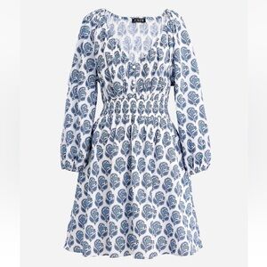 J.Crew V Neck Bouquet Block White Blue Dress Fit Flare XS Spring Easter