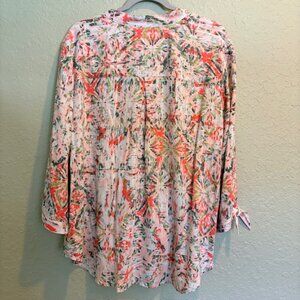 Allison Daley Womens VNeck Blouse 2XL Tie Front Cuffs 3/4 Sleeve IKAT Peach NWT