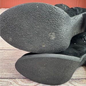 Elegant black heeled boots with iconic eagle design. Perfect for a bold look. Black suede Harley Davidson Boots size 7 m