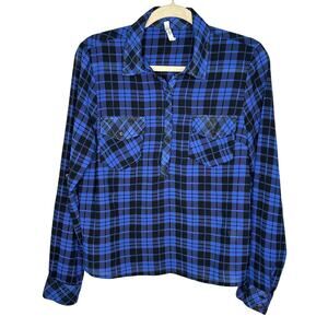 Live 4 Truth Blue Black Plaid Button Down Shirt Women's L Roll Tab Long Sleeve