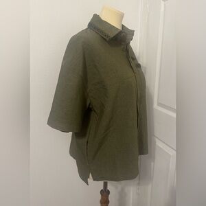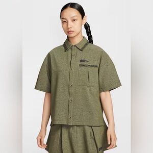 Nike Naomi Osaka Oversized Short-Sleeve Top Olive Green Button Up Tennis Size XS