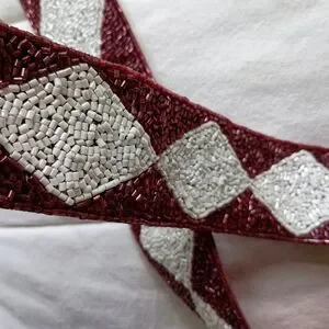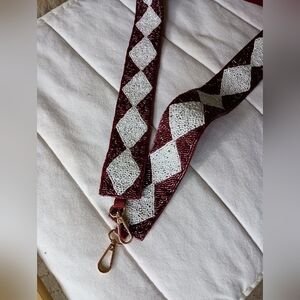 NWOT Burgundy and White Diamond Shape Beaded Purse Crossbody Strap