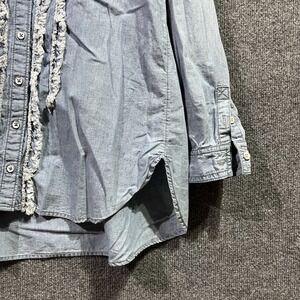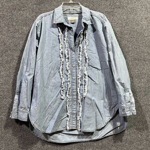 Pilcro By Anthropologie Shirt Womens XSP Blue Denim Ruffle Long Sleeve Button Up
