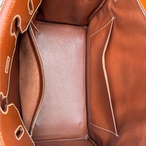 This iconic Birkin features the house’s signature structured silhouette, double rolled handles, front flap with sangle straps and turn-lock closure, and protective clou feet at the base. The interior is lined in matching leather and offers ample space for daily essentials, making the Birkin 35 one of the most practical and sought-after sizes for everyday use.
