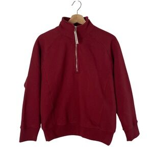 NEW American Giant Womens Midweight Half Zip Sweatshirt Top XS Red Burgundy USA