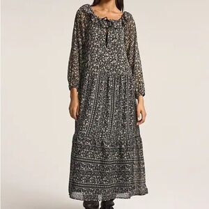 Elegant floral dress in black and cream. Perfect for any occasion with its stylish design and comfortable fit.