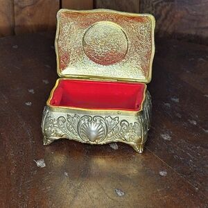 Vintage Ornate Jewelry Box with Blue and Gold Accents