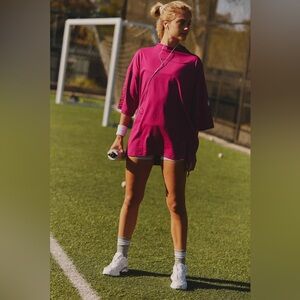 Warm up or cool down in this effortlessly essential tunic featuring a high neckline, dropped shoulders, lower back hemline, and 3/4 length sleeves for a super sporty finishing touch.