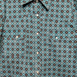 Keywords: Western, Cowboy, Rockabilly, Southwestern, Geometric, Pearl Snap, Rodeo, Boho, Indie, Retro, Vintage Style, Country, Workwear, Casual, Turquoise, Vintage, 80s, 90s