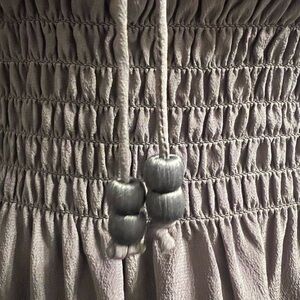 This is a pre-owned Floreat women's mini dress in a gray/taupe color, size M, from Anthropologie.