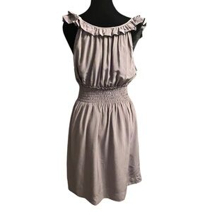 Floreat Gray/taupe Silk Ruffled Mini Dress M