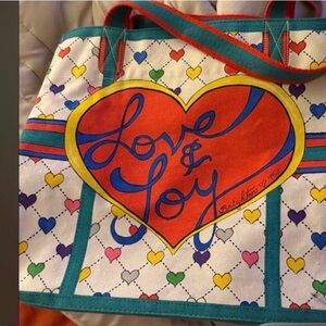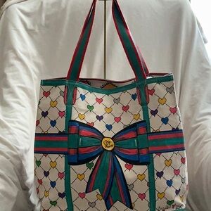 Brighton Limited Edition Love& Joy Large Colorful Bow Heart Pattern Tote.