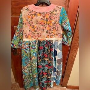 maxi kantha dress. Side pockets, quilted, heavy.