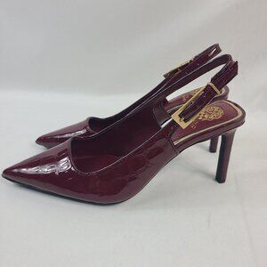 NEW Vince Camuto Slingback Glossy Croc Pointed Toe Heels In Chianti Red Sz 8.5M