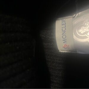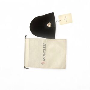 Classic black beanie with Moncler logo. Soft and warm knit design.